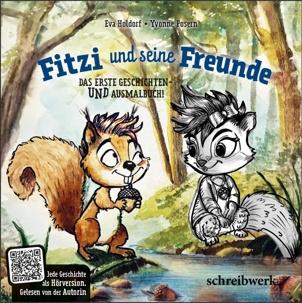Das Buch ist für Vorschulkinder von 2-6 Jahre geschrieben, aber auch ältere Kinder mögen es. Man kann sich das Buch nicht nur ansehen und darin lesen. Man kann Rätsel lösen, Bilder ausmalen oder den QR Code anklicken, dann erzähle ich die vier Geschichten und durch die Waldgeräusche fühlt man sich auch gleich in die richtige Umgebung versetzt. Natürlich liegen dem Buch lustige Sticker bei.